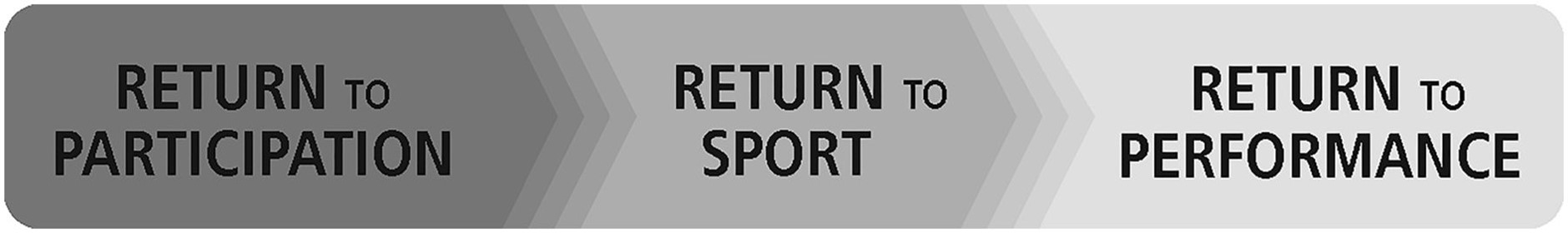 In 2016, leading sports injury rehabilitation experts drafted a consensus statement to define the three critical return to sport (RTS) stages following injury(1). These exist on a continuum and are designated (1) return to participation, (2) return to sport, and (3) return to performance.